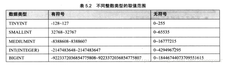 tinyint smallint mediumint int bigint
