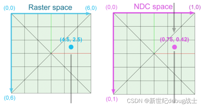 1. 首先,将Raster space转换为NDC space(范围[0,1]),使用如下公式: