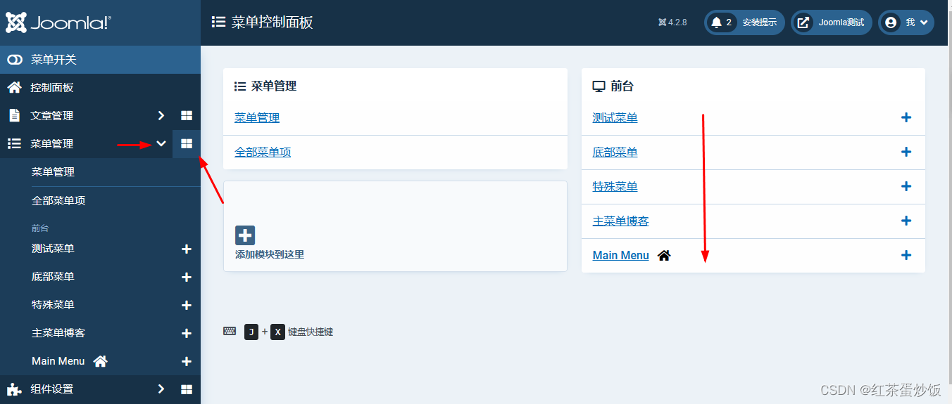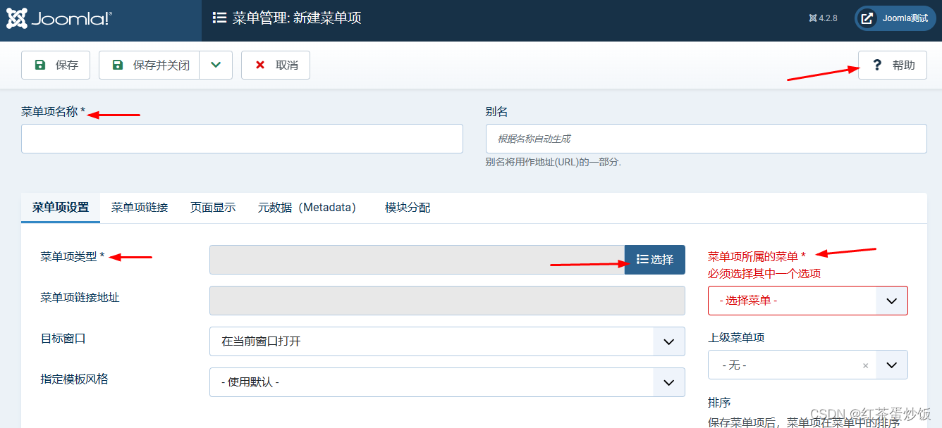 菜单的设置是构建网站真正成型的步骤。在Joomla系统中对于菜单操作首先要明确【菜单】和【菜单项】的具体含义。