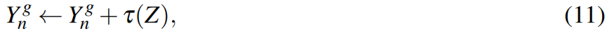 通过转换函数 \(\tau \) 对 \(Z\) 进行变换,然后与 \(Y^{g}_{n}\) 进行融合。