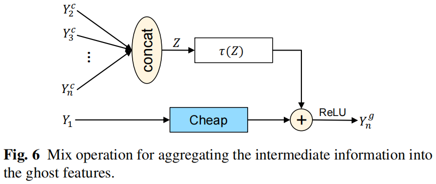 其中 \(L'_{2},...,L'_{n}\) 是相比于式(7)宽度为 \((1-\lambda)\times width\) 的thin block。\(Y^{g}_{n}\) 可以通过对 \(Y_{1}\) 的廉价操作 \(C\) 得到
