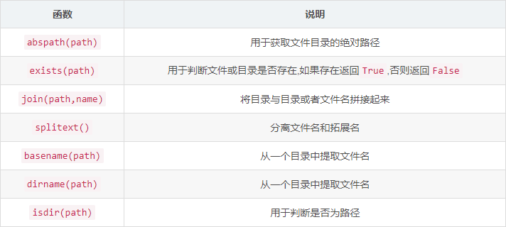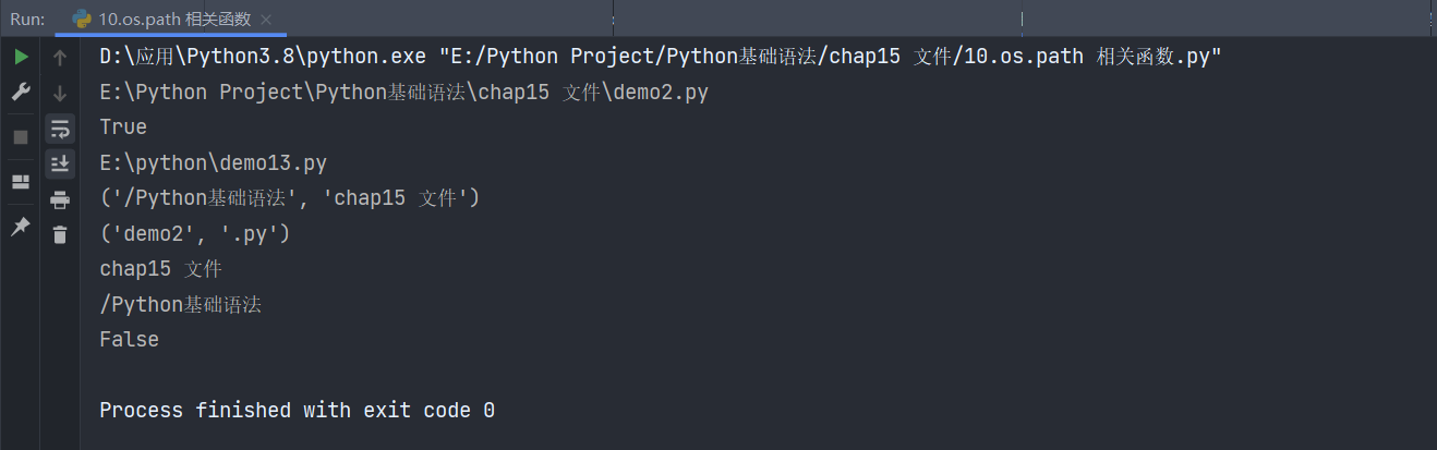 print(os.path.exists('demo2.py')) # 用于判断文件或目录是否存在,如果存在返回True,否则返回False