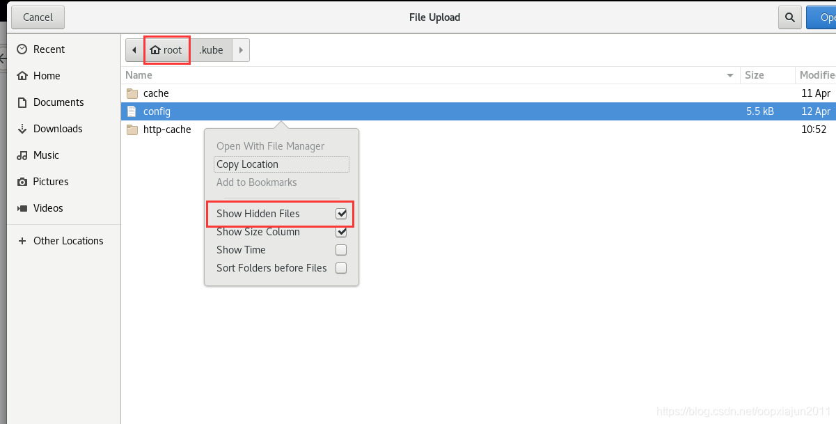 kubeconfig 一般在~/root/.kube/config 里面,(把隐藏文件显示出来【右键就能操作】)
