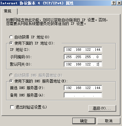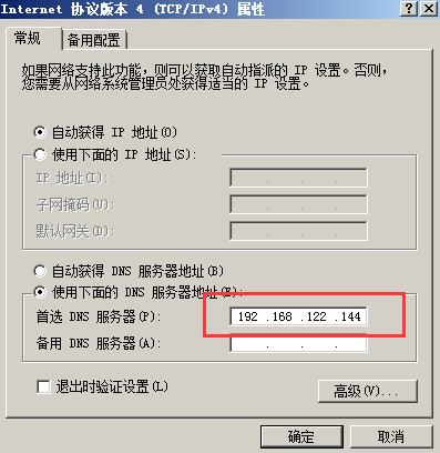 在Client机上测试结果,(将DNS静态指定为192.168.122.144)