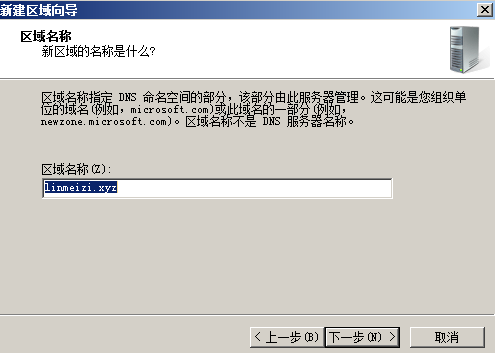 在此输入区域名称,这里我用我之前搭好的web网站的域名作为区域。
