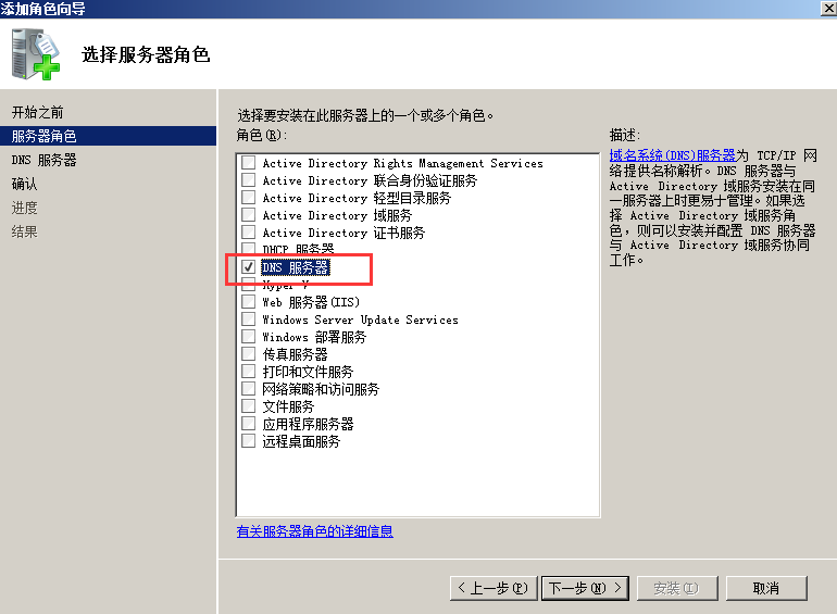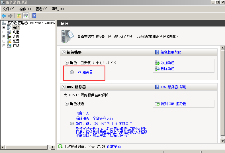 安装完成,已经能看到角色中新添加了一个DNS服务器