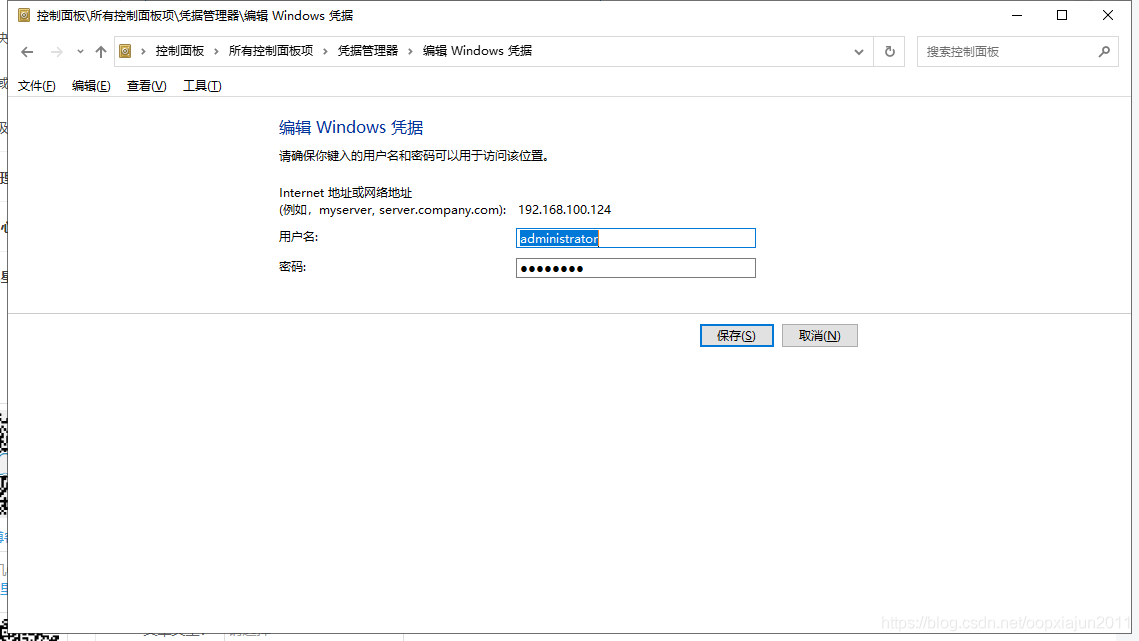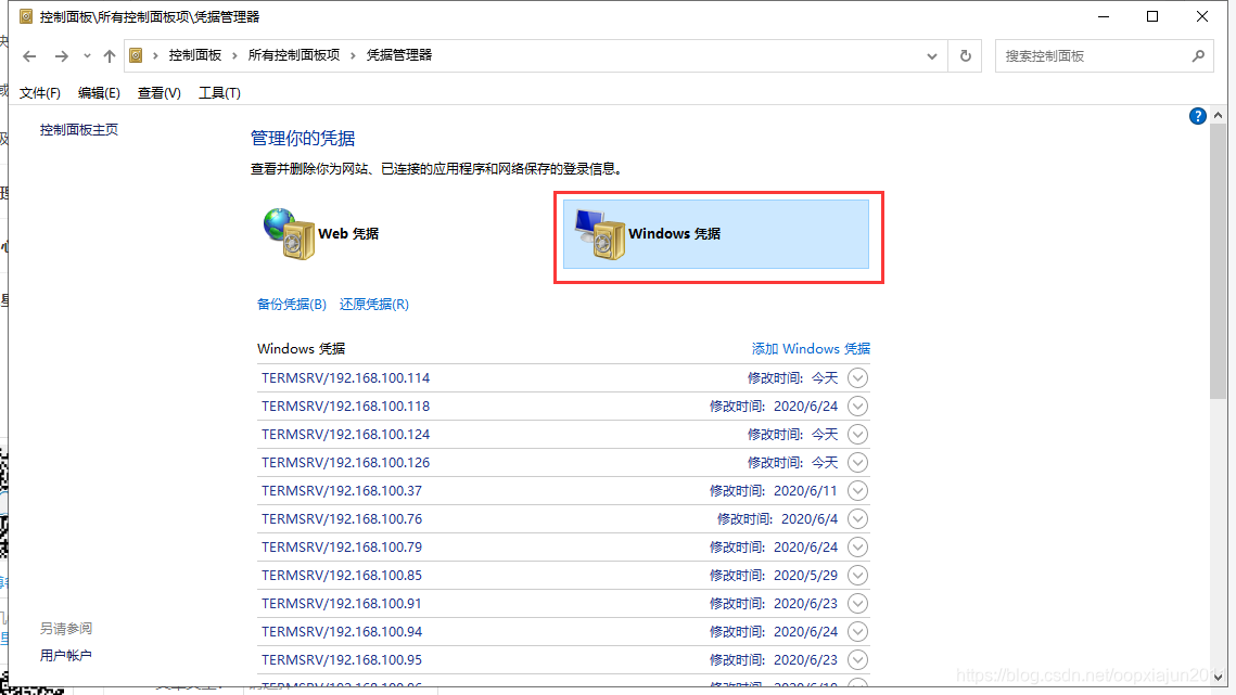 2:打开控制面板->用户账户->管理你的凭据,找到Windows凭据,里面列出了你远程桌面记录的链接地址和用户名密码,点击有问题的那条凭据然后点编辑,输入本机管理员账户的用户名和密码就可以修改了,把远程连接名称前面的“本机名称\“去掉,然后保存,再远程连接就没问题了