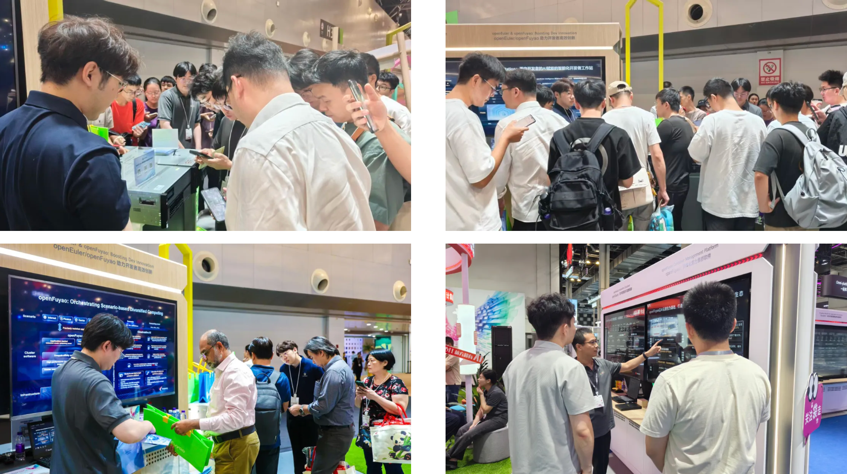 大会期间,来自互联网、金融、运营商、云厂商、智能制造、高校等十余个领域的千名开发者驻足openFuyao展区、CodeLabs体验区,零距离交流体验了社区最新技术演进成果,对社区表现出浓厚兴趣。