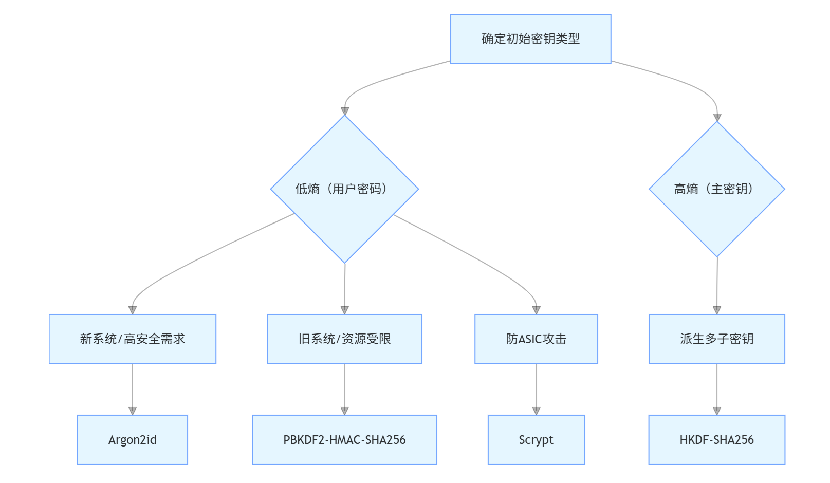 - 不在客户端执行密钥派生(防止算法参数泄露,应在服务器端或 HSM 中执行)。