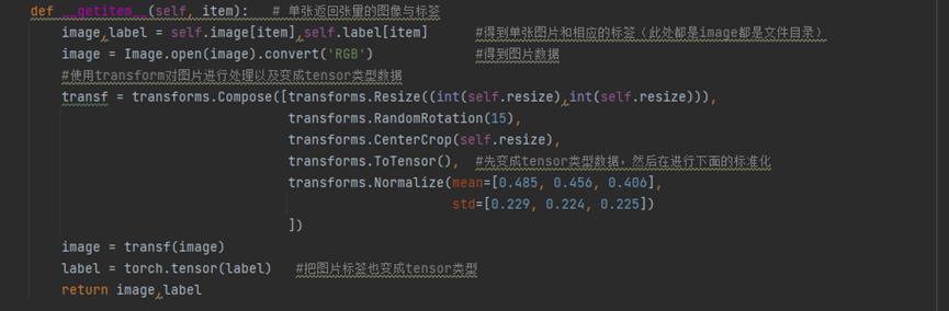 image,label = self.image[item],self.label[item] #得到单张图片和相应的标签(此处都是image都是文件目录)
