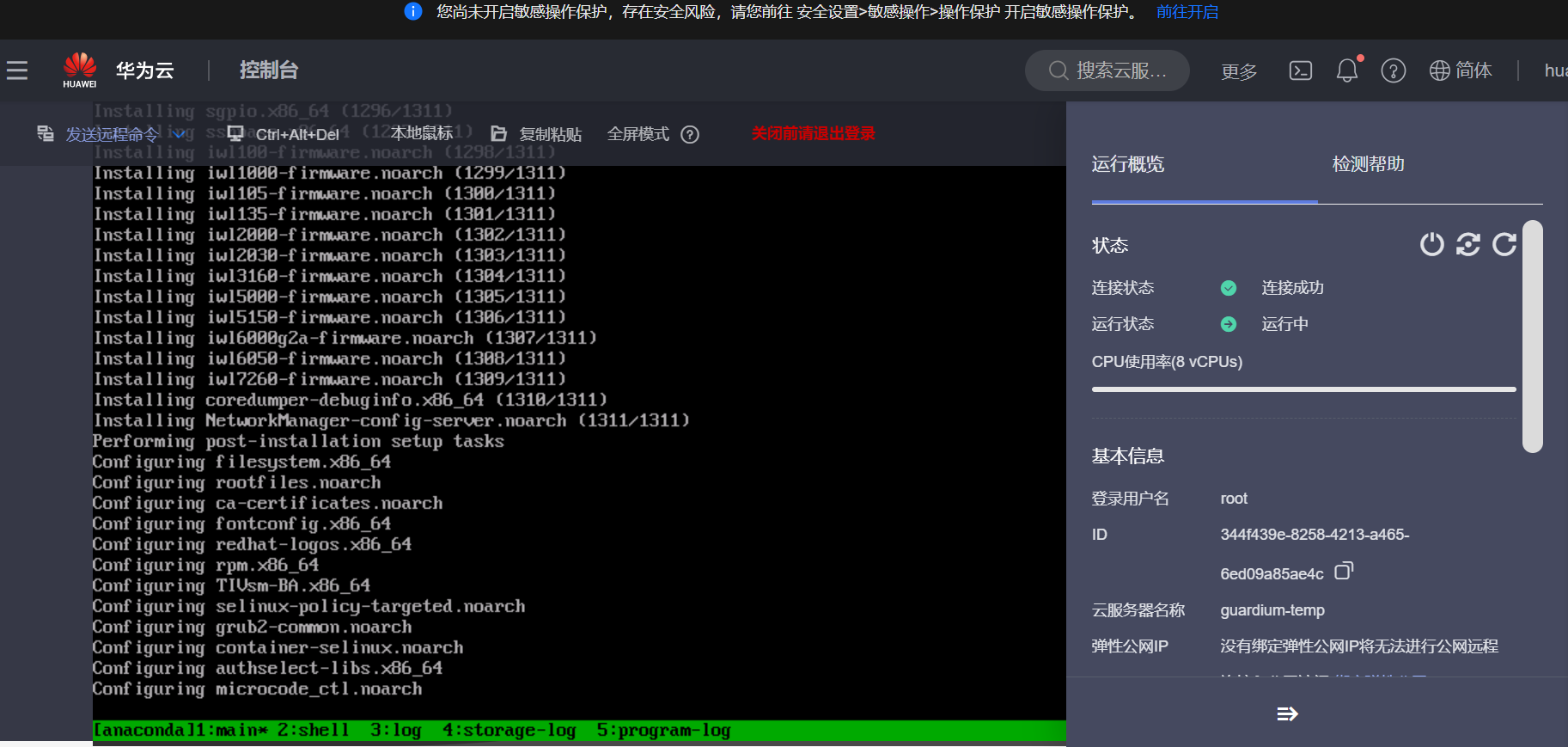 我的场景是要给华为云、天翼云、阿里云、腾讯云登公有云上部署数据库安全软件。这个数据库安全软件是一个基于LINUX上的一体机。我就选择用华为云完成了这项工作。