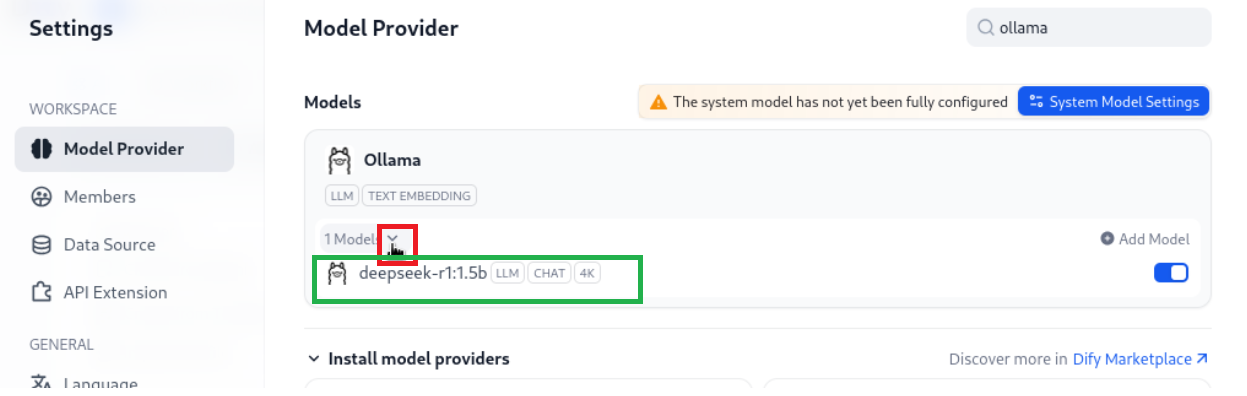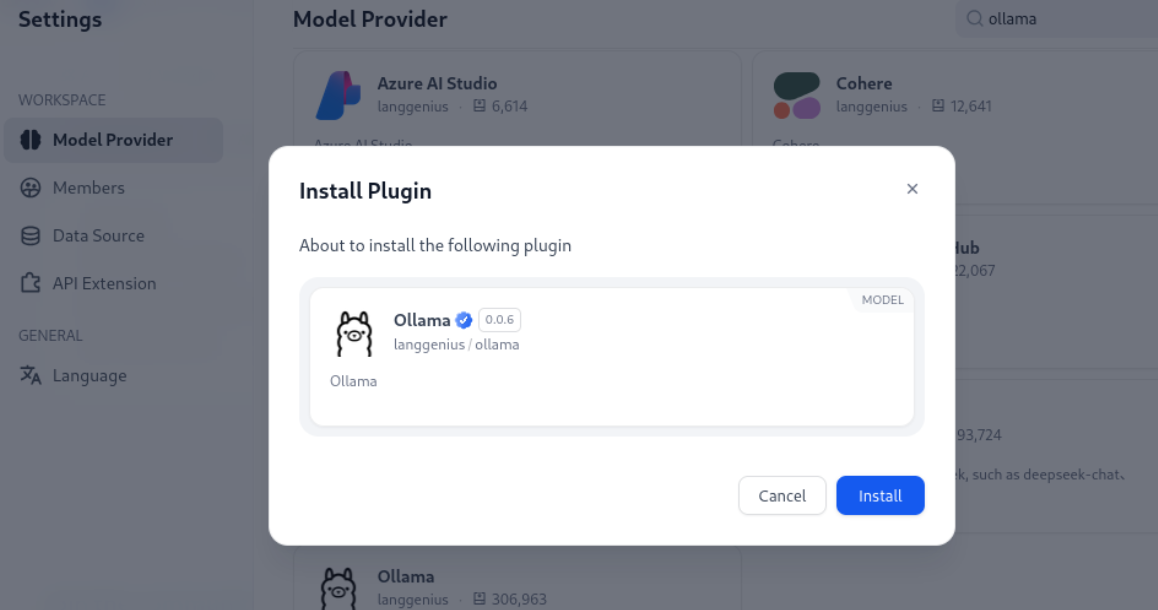 在Ollama 插件安装弹出消息框上 点击 install 。