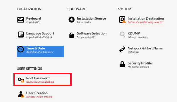 输入root密码,取消默认 的 Lock root account 选择,选择 Allow root SSH login with password ; 点击done.