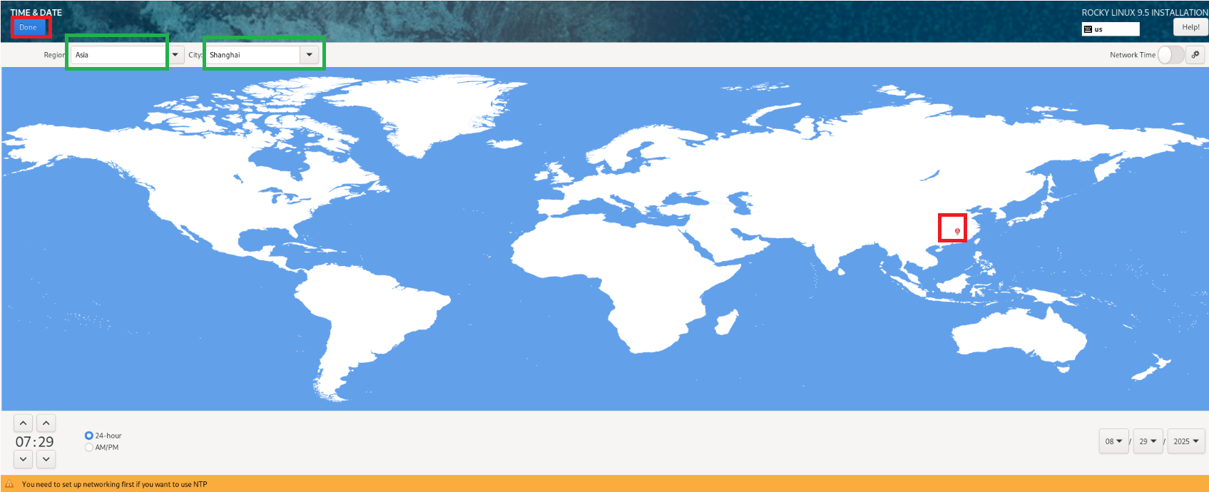 点击 世界地图上的 任一 中国区域,系统上的Region和City 会自动变化,点击 Done