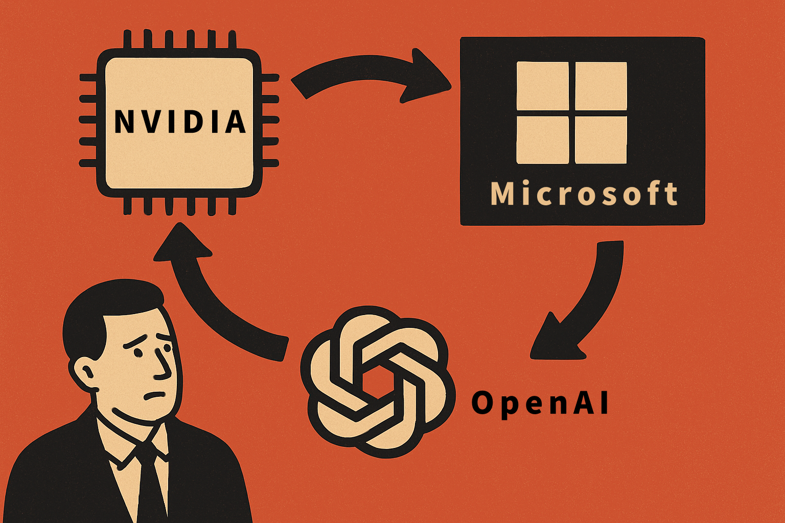 今天的英伟达,不仅卖GPU,还变成了“金融中枢”。OpenAI花巨资买它的芯片,英伟达又反手投资OpenAI;微软给OpenAI提供云服务,同时也是OpenAI的大股东;谷歌一边竞争、一边采购英伟达的芯片,还在自己的AI模型里跟进军备竞赛。资金在几家公司之间循环:英伟达把利润送给OpenAI,OpenAI再把钱还给微软和谷歌,微软和谷歌再采购英伟达的GPU。所有的现金流都在同一个封闭系统里打转。
