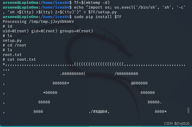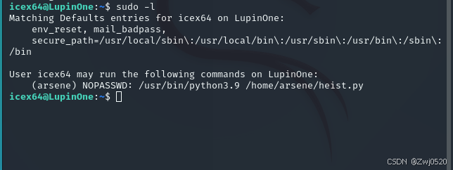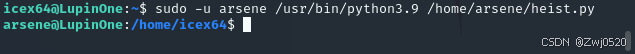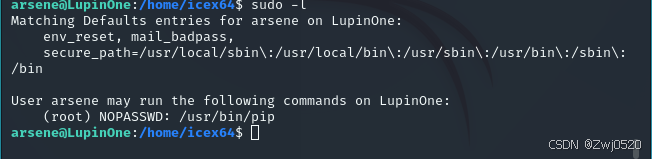 执行完脚本我么你会到一个arsene的用户,查看可以提权的命令