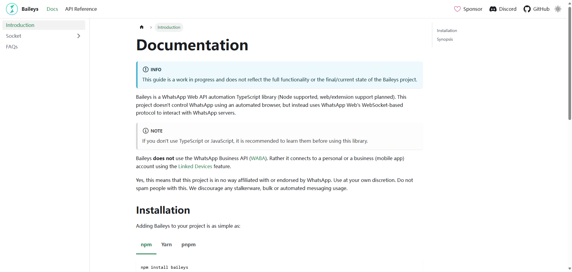 Baileys 是一个基于 WebSockets 的轻量级 TypeScript/JavaScript 库,专门用于与 WhatsApp Web API 交互。它提供了完整的 WhatsApp 功能支持,比如收发消息、管理群组等,适合开发者构建自己的 WhatsApp 自动化工具或集成服务。项目强调合法使用,明确表示与 WhatsApp 官方无关,并提醒用户避免滥用或违反 WhatsApp 的服务条款。代码开源,采用 MIT 许可证,开发者可以自由使用和修改。