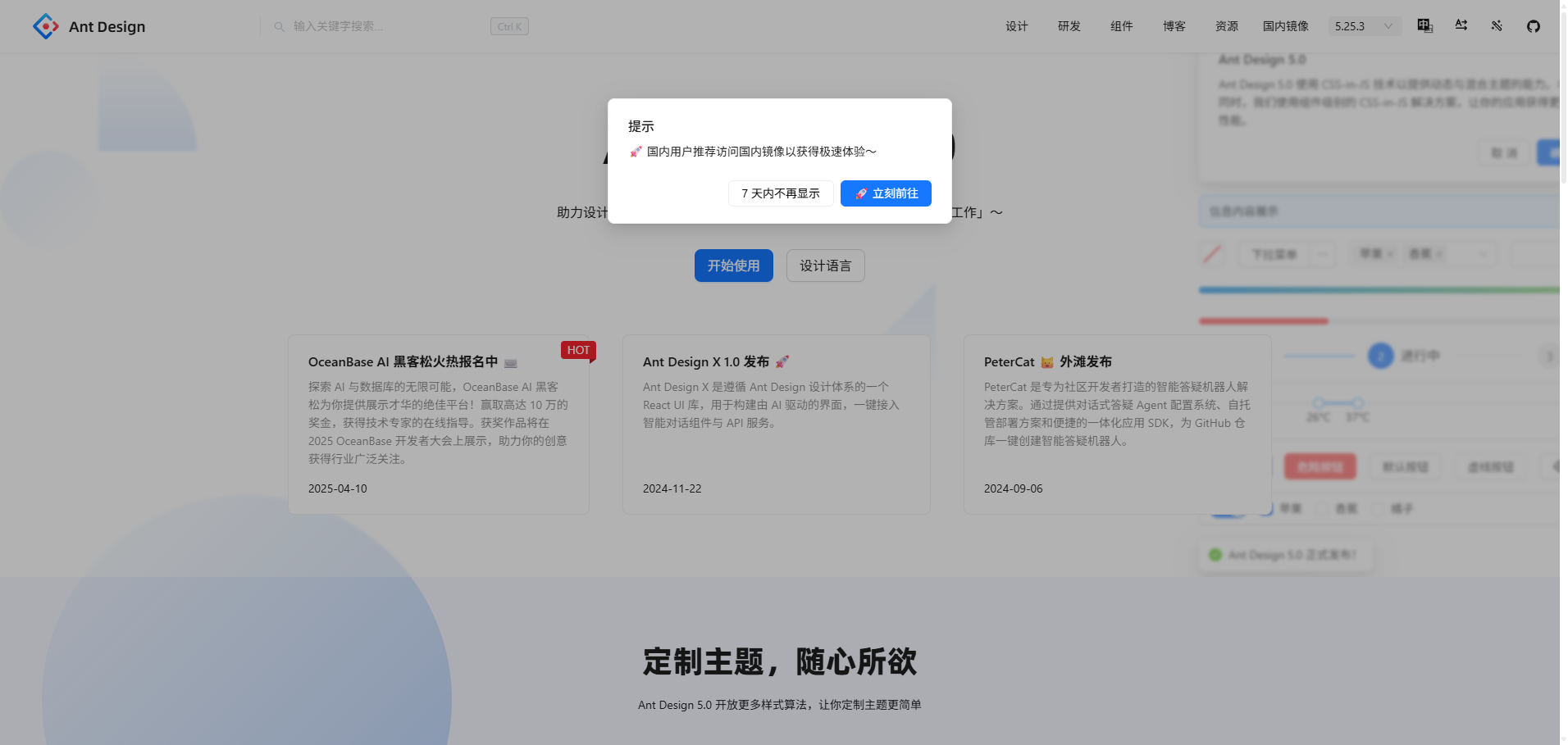 Ant Design 是一个企业级的 UI 设计语言和 React 组件库,专门为 Web 应用打造。它提供了一套高质量的 React 组件,开箱即用,支持 TypeScript 和国际化。Ant Design 还包含丰富的设计资源和开发工具,主题定制灵活,兼容现代浏览器和服务端渲染。无论是开发后台管理系统还是复杂的前端应用,Ant Design 都能帮助开发者快速构建美观且功能完善的界面。