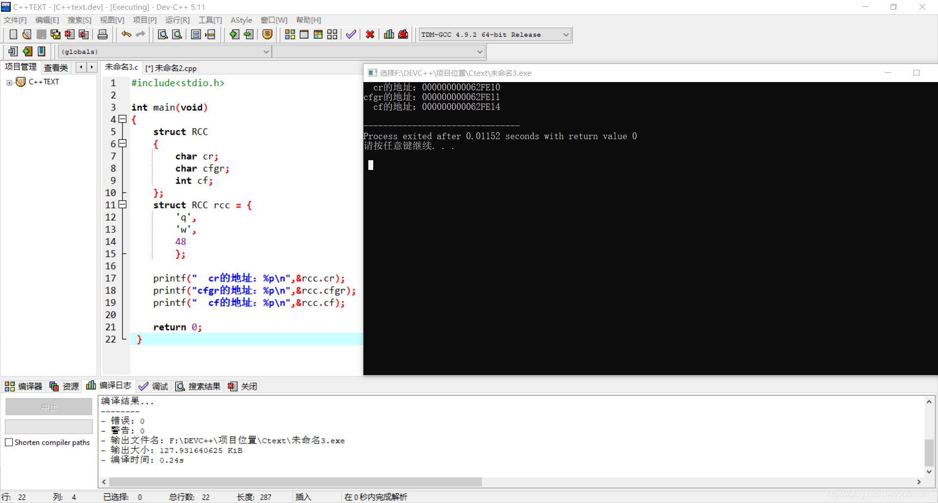 printf(" rcc的地址:%p\n",&rcc);