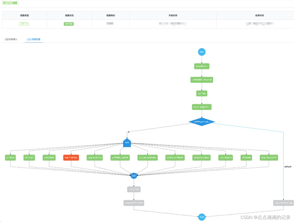 基于上述实践,点评内容平台实现了可视化全链路日志追踪,能够一键追踪任意一条内容所有业务场景的执行,并通过可视化的链路进行执行现场的还原,追踪效果如下图所示: