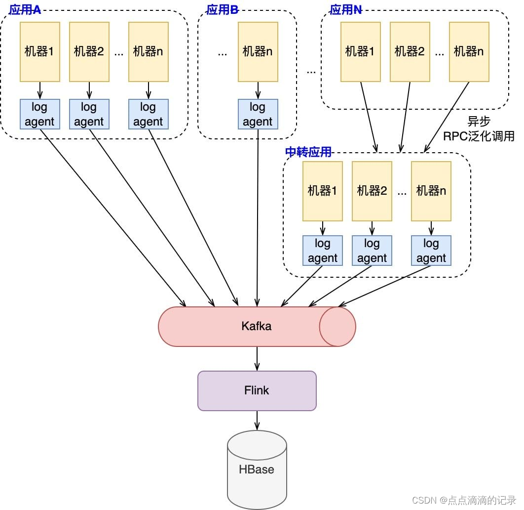 整体而言,log_agent + Kafka + Flink + HBase的日志上报和存储架构能够很好地支持复杂的业务系统,天然支持分布式场景下众多应用的日志上报,同时适用于高流量的数据写入。