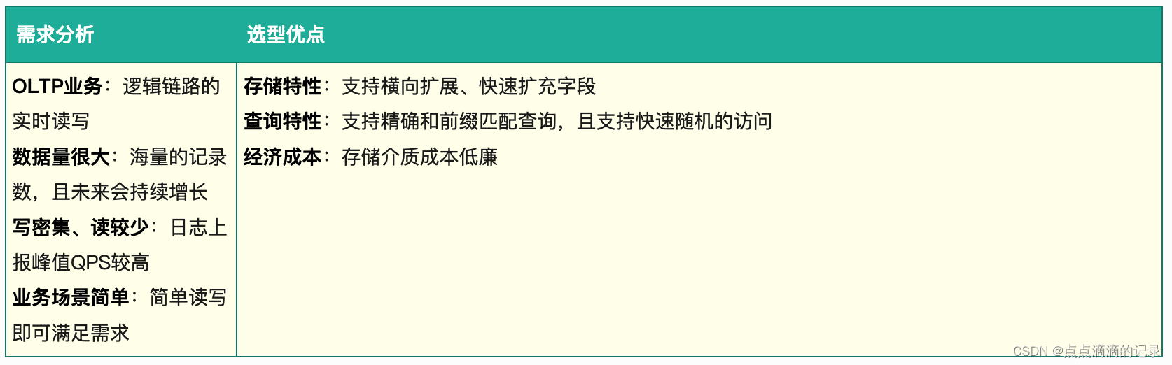 - 日志存储:完成日志解析后,日志会按照树状的存储模型进行落地存储,结合存储的需求分析以及各个存储选项的特点,点评内容平台最终选择HBase作为存储选型。