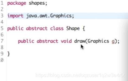 Shape类表达的是一种概念,一种共同属性的抽象集合,我们并不希望任何Shape类的对象会被创建出来。那么,我们就应该把这个Shape类定义为抽象的。我们用abstract关键字来定义抽象类。
