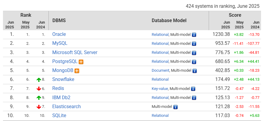 数据库行业没有人会不知道甲骨文,其主打的数据库产品 Oracle 是世界上最先进的商业数据库产品,在 DB-Engines 收录的 424 个数据库产品中,Oracle 仍然一直排在第一位,并且遥遥领先于第二名的 MySQL 数据库。