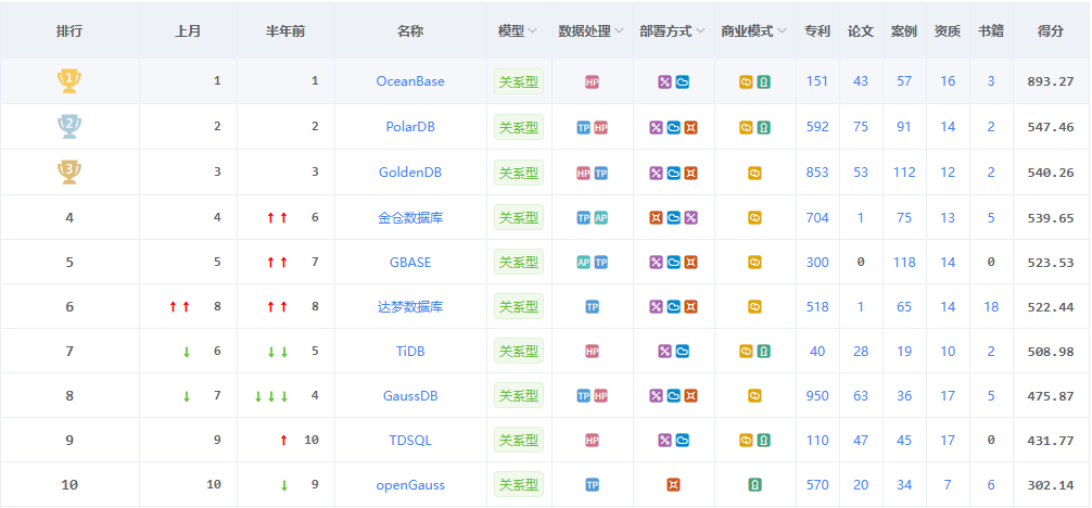 为什么这么说,大家可以看看墨天轮的排名,这半年前 10 的名次有没有发生大的变化?Oceanbase 已经持续多久占据榜首了?有人可能说这个排行榜没有参考价值,但如果让大家在国产数据库里选出各自心目中排名前 5 的厂商,会有多少超出这 10 家之外的呢?