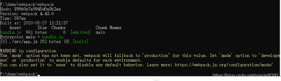 警告可以忽略,这时候在dist文件夹中生成了一个build.js文件