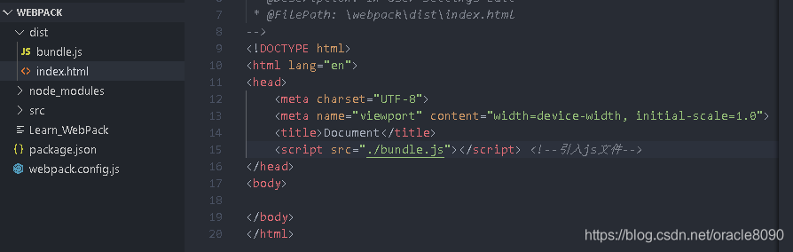 在dist下面创建index.html,引用bundle.js即可看到效果