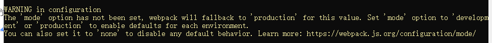 The 'mode' option has not been set, webpack will fallback to 'production' for this value. Set 'mode' option to 'development' or 'production' to enable defaults for each environment.