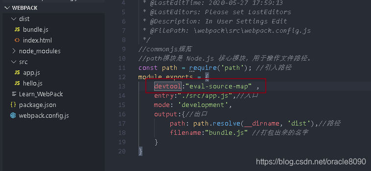 生成错误信息文件, 配置webpack.config.js文件,添加devtool:"eval-source-map"