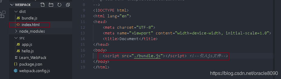 <script src="./bundle.js"></script> <!--引入js文件-->