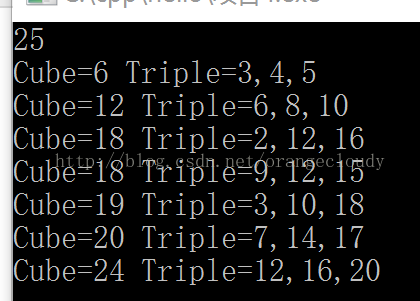 例题:完美立方:a^3=b^3+c^3+d^3;编写一个程序,对任给的正整数N(N<=100),寻找所有的四元组(a,b,c,d),使完美立方成立,
