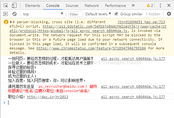当然,大部分都是招聘广告,据说是在源代码加console.log("test");