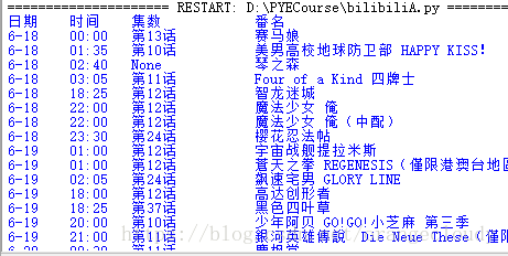 本文介绍了一种爬取Bilibili网站新番播放时间表的方法,通过解析网页源代码并使用Python的requests和json库来获取数据。代码实现了抓取指定URL的数据,并按日期、时间、集数及番剧名称的格式输出。