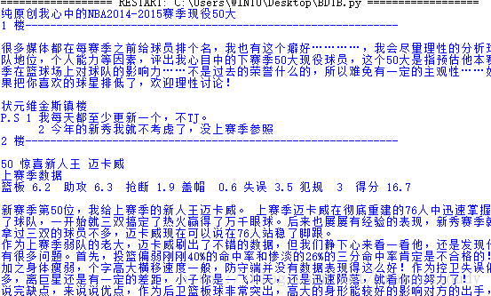 main()将baseURL改掉,即可爬取其他帖子,也可以将内容保存到文件中;