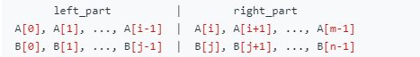 B[j-1] <= A[i] and A[i-1] <= B[j]
