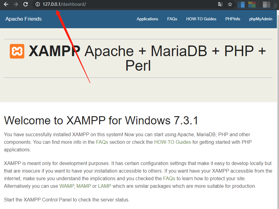 然后看一下本地能否访问,输入127.0.0.1。