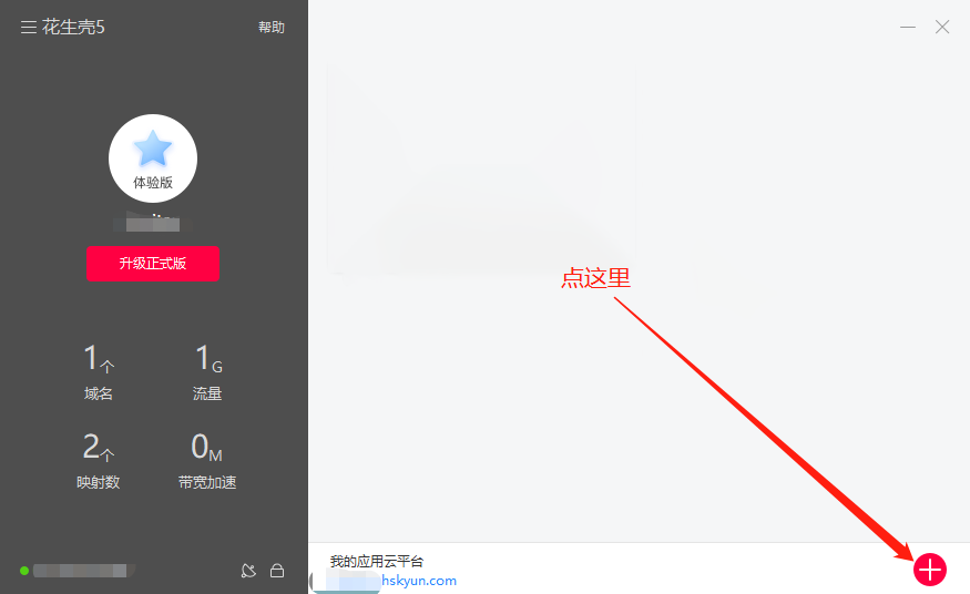 打开花生壳5.0,点击右下角的+号;