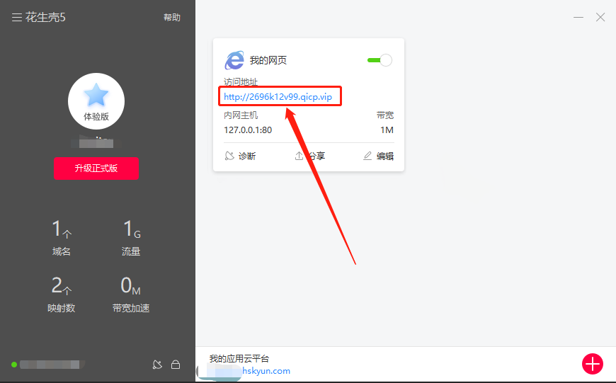 然后,花生壳5.0会生成一个外网的访问地址,把这个地址发给亲朋好友或者老师,他们就能访问到你的网页了;