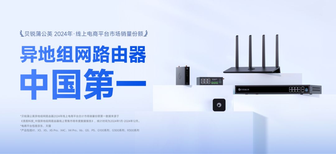 至于各地连锁商场、办公园区、各地工厂等视频监控点位的异地组网需求,贝锐蒲公英还有一系列异地组网路由器及软件客户端,可按需任意搭配,同时凭借出色的技术实力和市场表现,贝锐蒲公英异地组网路由器还斩获了2024年线上电商平台市场销量份额中国第一的佳绩。