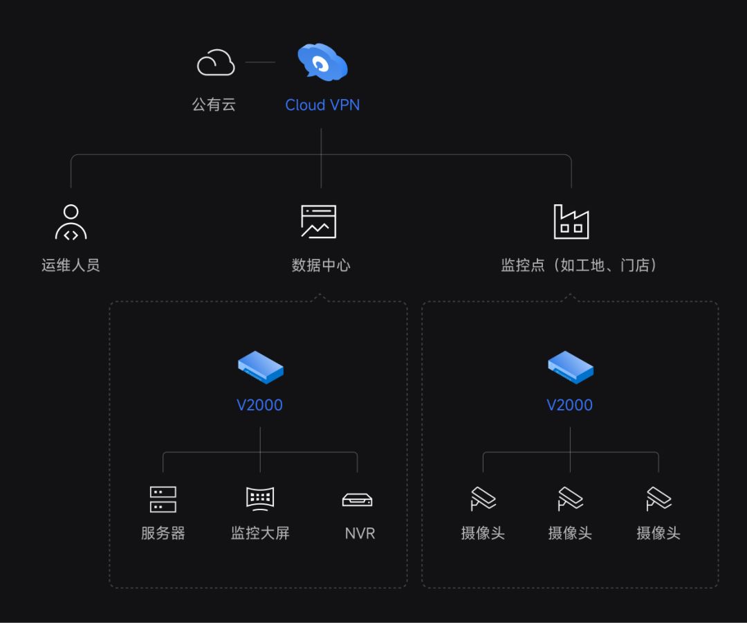 例如:在视频监控场景中,V2000能部署在监控中心,稳定、流畅汇聚各地远程传输的海量监控画面;连锁门店场景下,V2000可用于企业数据中心,高效打通业务系统、互联各店网络,店铺经营数据安全、实时同步;企业办公时,V2000可轻松实现各地办公网络互联,应对高并发、大流量文件传输、业务系统远程访问需求。