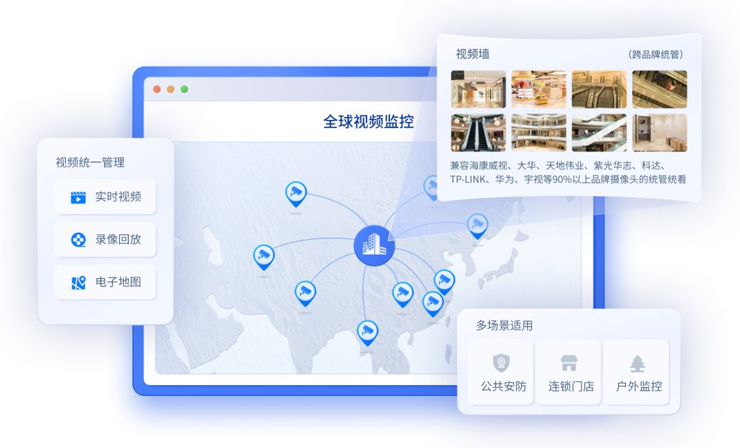 强大的异地组网能力,再结合贝锐蒲公英视频统管平台,远程查看、回放监控视频,实现视频监控数据集中存储,远程配置各地监控设备,这些曾经复杂繁琐的操作,都能一键搞定,为企业提供一站式的网络组网与视频监控解决方案。