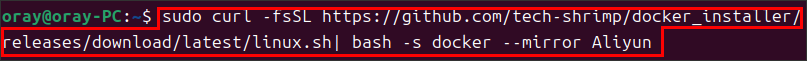 sudo curl -fsSL https://github.com/tech-shrimp/docker_installer/releases/download/latest/linux.sh | bash -s docker --mirror Aliyun