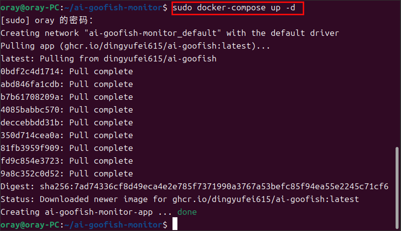 项目已包含 docker-compose.yaml 文件,docker-compose 会自动读取 .env 文件和 docker-compose.yaml 的配置,并根据其内容来创建和启动容器。