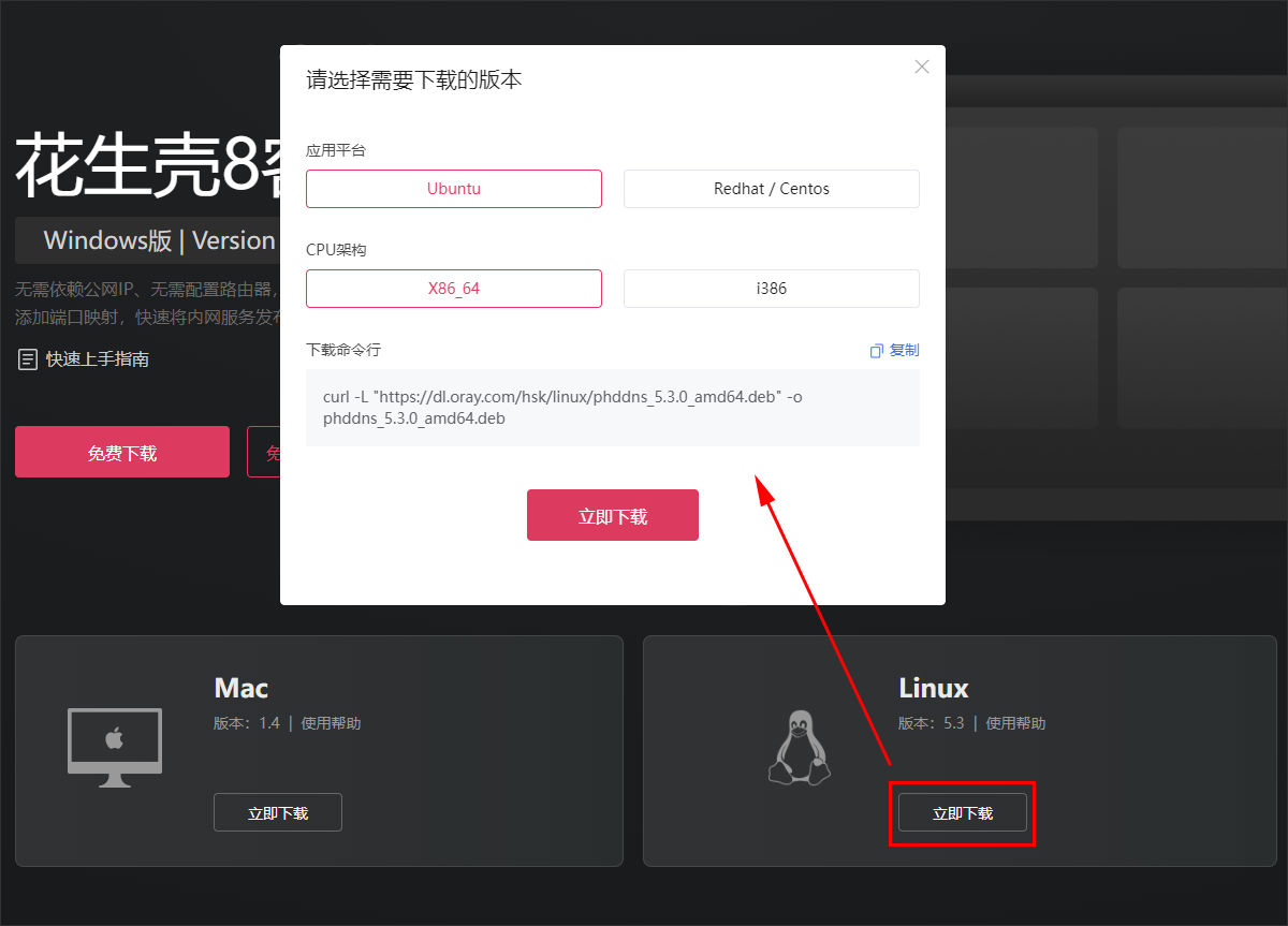 1. 在贝锐花生壳官网下载并安装花生壳 Linux 客户端