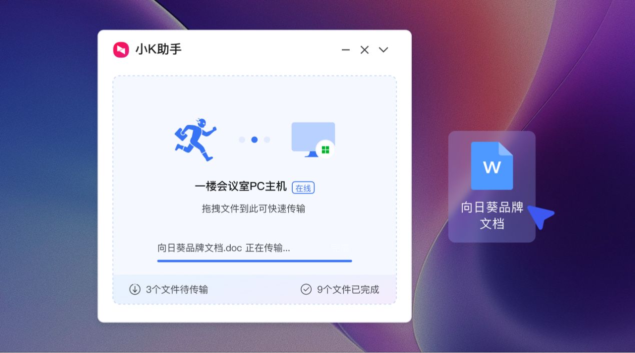 我们只需将文件拖拽到悬浮窗,即可将文件发送到另一台电脑,无需再打开远程桌面或进入文件传输界面,并且全程都在本地操作,无需第三方传输软件上传下载,操作更便捷高效。