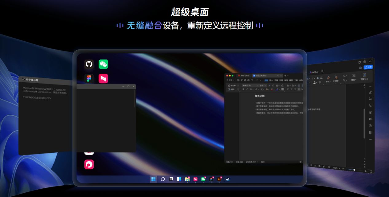 超级桌面提供了一种设备无缝融合的远程操作体验,当前最多可以打开5台远程设备的应用。